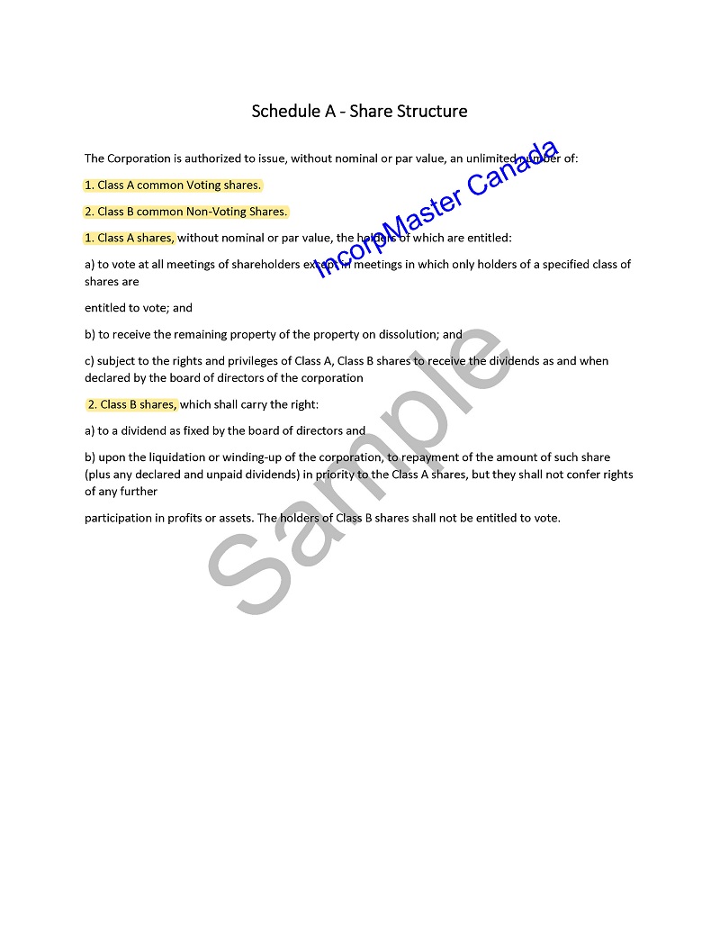Sample of Standard Articles of Incorporation